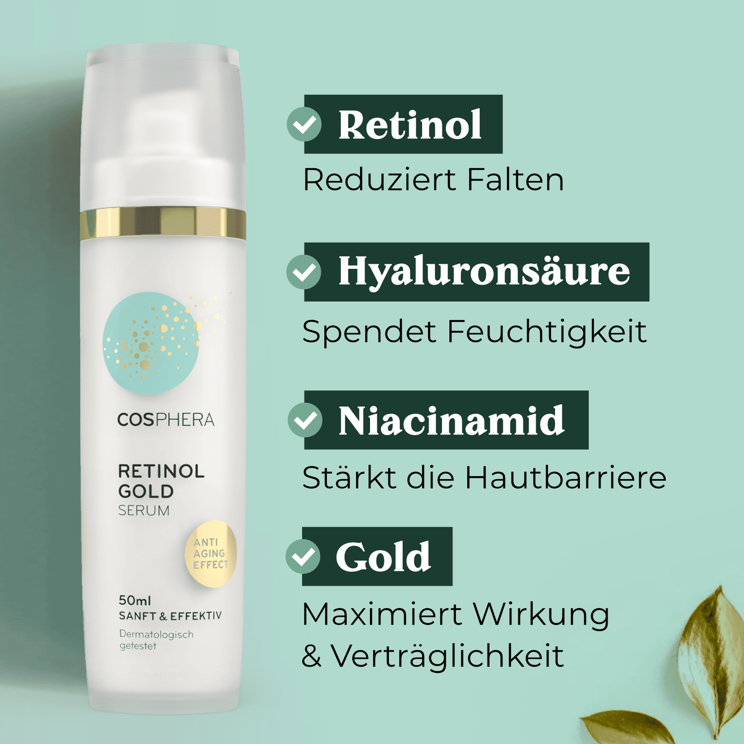 | title | Innovatives Golden-A Retinol mit Hyaluron, stärkendem Niacinamid und straffenden Peptiden für sichtbar verjüngte Haut. |
